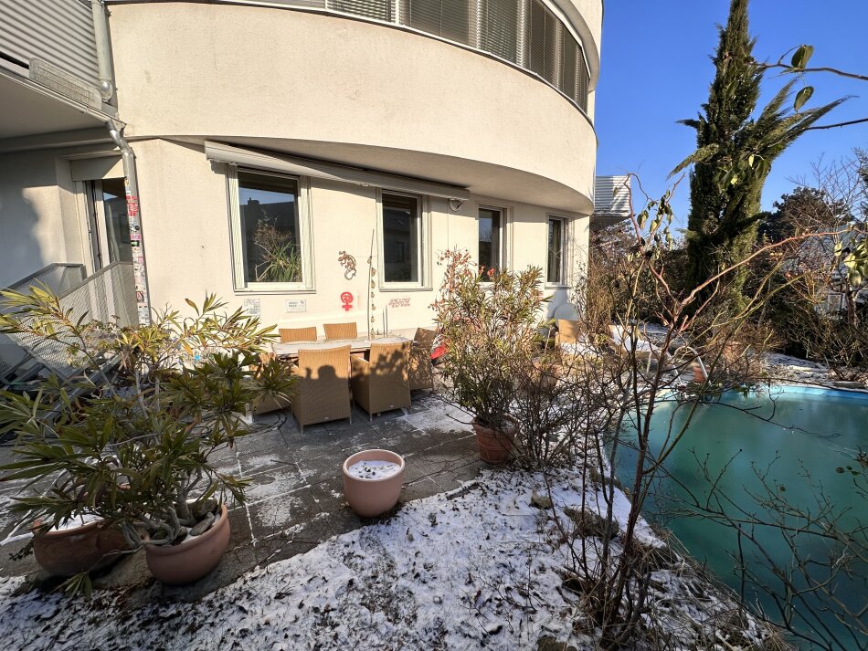 Die Wohnung begeistert nicht nur durch ihre durchdachte Raumaufteilung, sondern auch durch ihren herrlichen Grünblick, der Ihnen jeden Tag ein Stück Natur ins Wohnzimmer bringt. Stellen Sie sich vor, wie Sie an warmen Tagen auf Ihrer eigenen Terrasse die Sonne genießen oder im angrenzenden Garten mit Pool entspannen können.