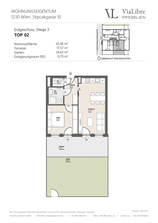 Die 2 Zimmer Gartenwohnung in der 3. Stiege der Anlage ist wie folgt aufgeteilt: