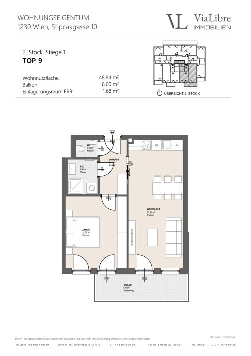 Für nähere Informationen sowie einen Besichtigungstermin stehen wir Ihnen gerne unter +43 680 1600 507 und unter office@vialibre.at zur Verfügung. Wir weisen ausdrücklich darauf hin, dass eine Besichtigung der Baustelle ausnahmslos nur nach Terminvereinbarung stattfinden kann. Das Betreten der Baustelle aus Eigenem bzw. für betriebsfremde Personen ist untersagt! Eine etwaige Objektbesichtigung erfolgt auf eigene Gefahr. Sämtliche Verkaufspläne sind unter vialibre.at abrufbar.